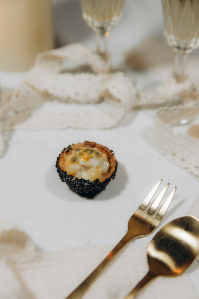 Pâte sucrée noire, crémeux citron jaune & vert, ganache montée sésame noire